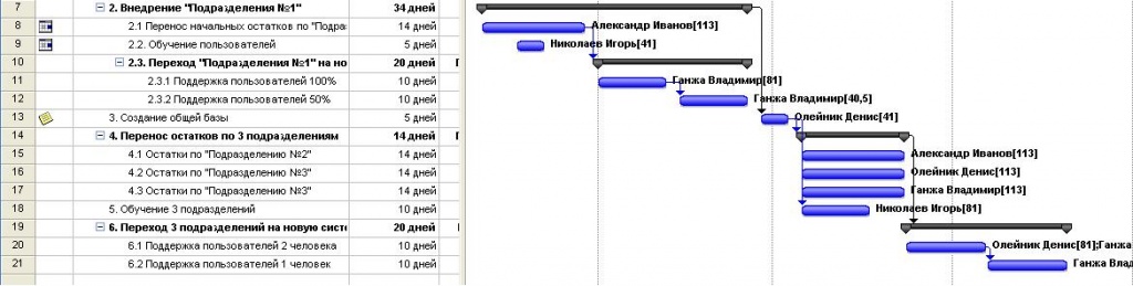 Следующим этапом после создания технического задания является план работ, описывающий внедрение программы 1С.